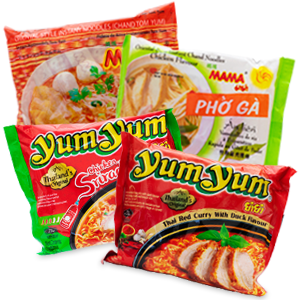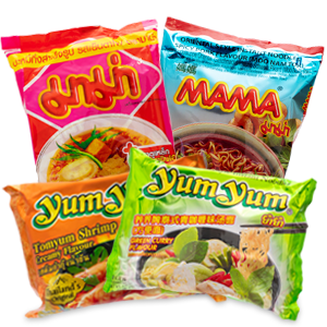 After instant noodles were invented in 1958, they quickly spread from Japan throughout Asia. MAMA , the brand of Thai President Foods, is the market leader in Thailand with a 50% share. It is so popular that "MAMA" is now synonymous with instant noodles for many Thais. The first flavor to hit the market was Tom Yum Shrimp Flavor .