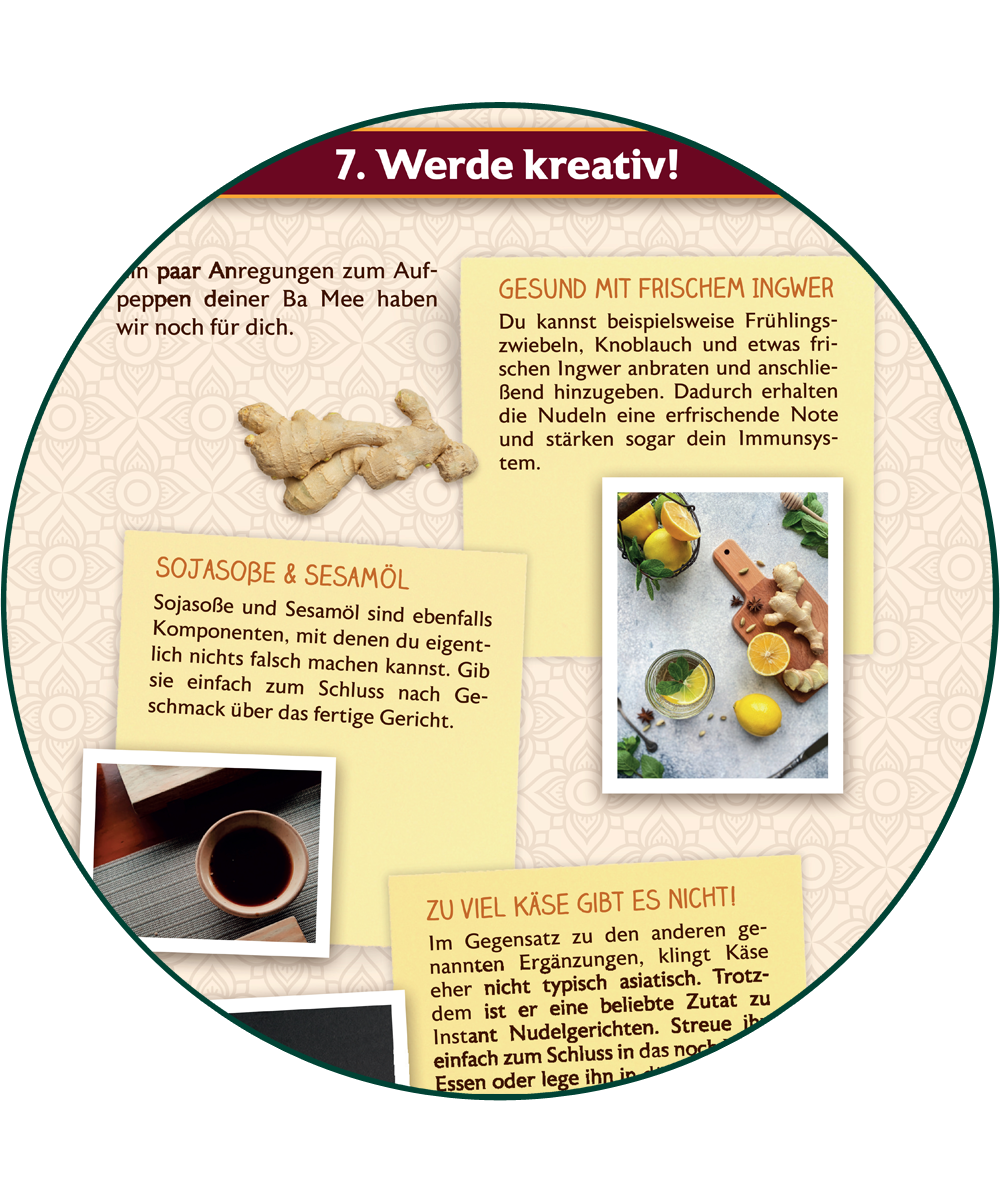 Each package contains a magazine lovingly designed by us. In it you can find a lot of interesting background knowledge about Thai history and food culture and we will also give you practical tips on how to prepare delicious Thai-style instant noodle dishes.