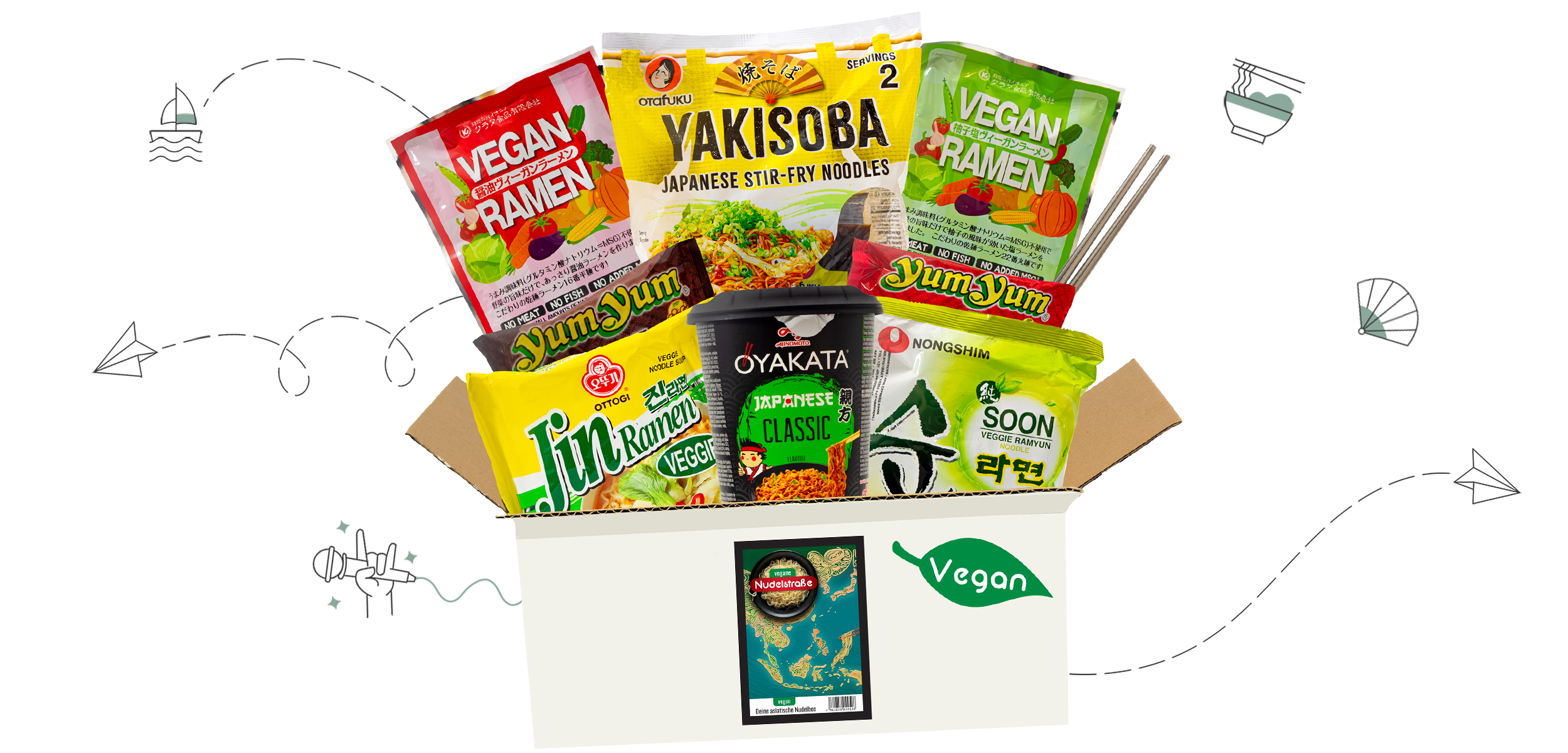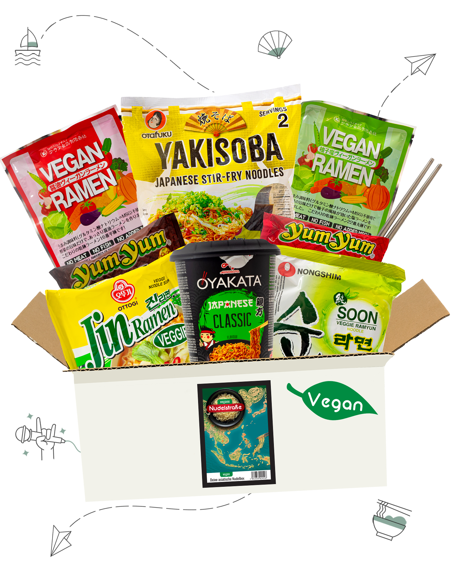That's why we have developed a box with a lot of love and care that will immerse you in the fascinating and diverse world of Asian cuisine. This box lets you try lots of different noodle specialties from Asia - and the best part is that all the noodles in our box are vegan!