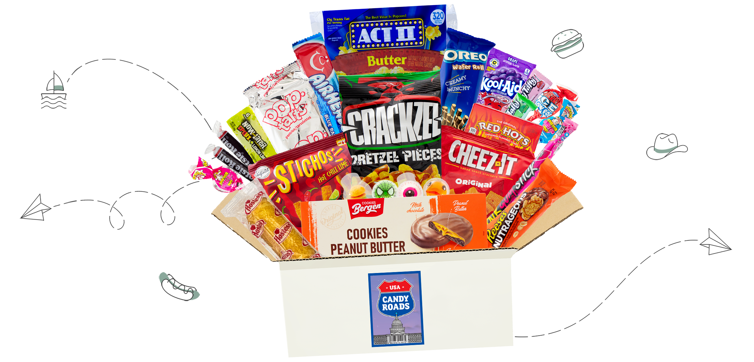 Hol dir jetzt die Candy-Roads-Box und starte deinen kulinarische Road-Tripp in den Vereinigten Staaten von Amerika!