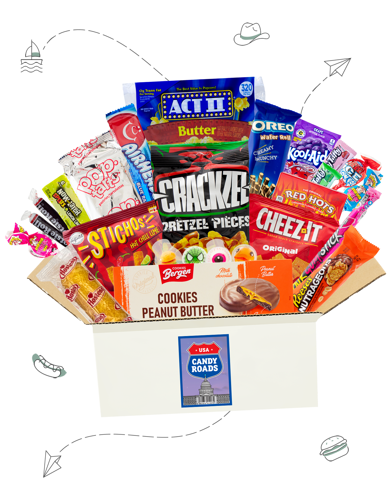 Mach mit über 20 ausgewählten Süßigkeiten eine Reise durch Amerika!